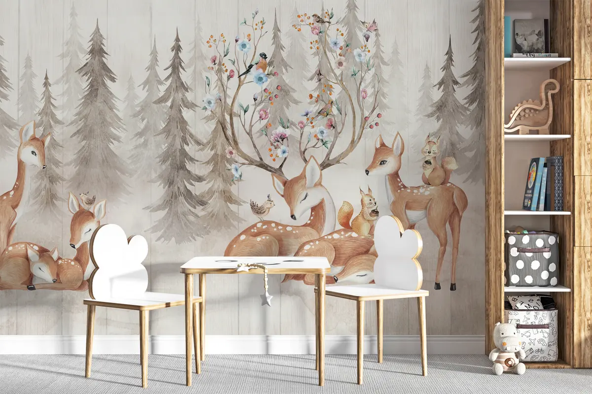Τοιχογραφίες Ακουαρέλα δάσος με ταράνδους Nr. u98679