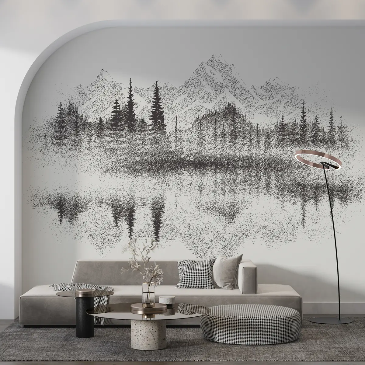 Τοιχογραφίες Το δάσος και τα βουνά αντανακλώνται στη λίμνη Nr. u98808