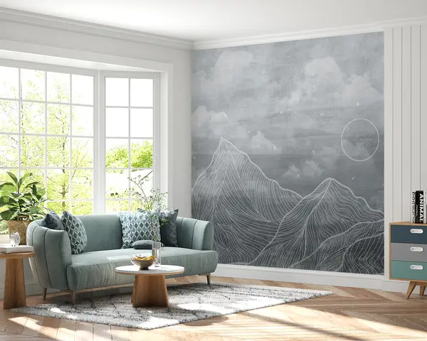Τοιχογραφίες Grunge υφή με σύννεφα και βουνά, γκρι χρώμα, φύση θέμα τέχνης Nr. u98838v1