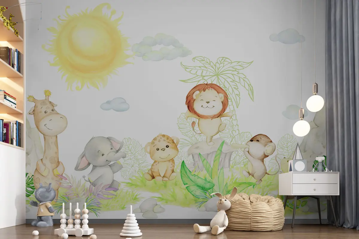 Τοιχογραφίες Χαριτωμένα τροπικά ζώα σε στυλ ακουαρέλας Nr. u99486