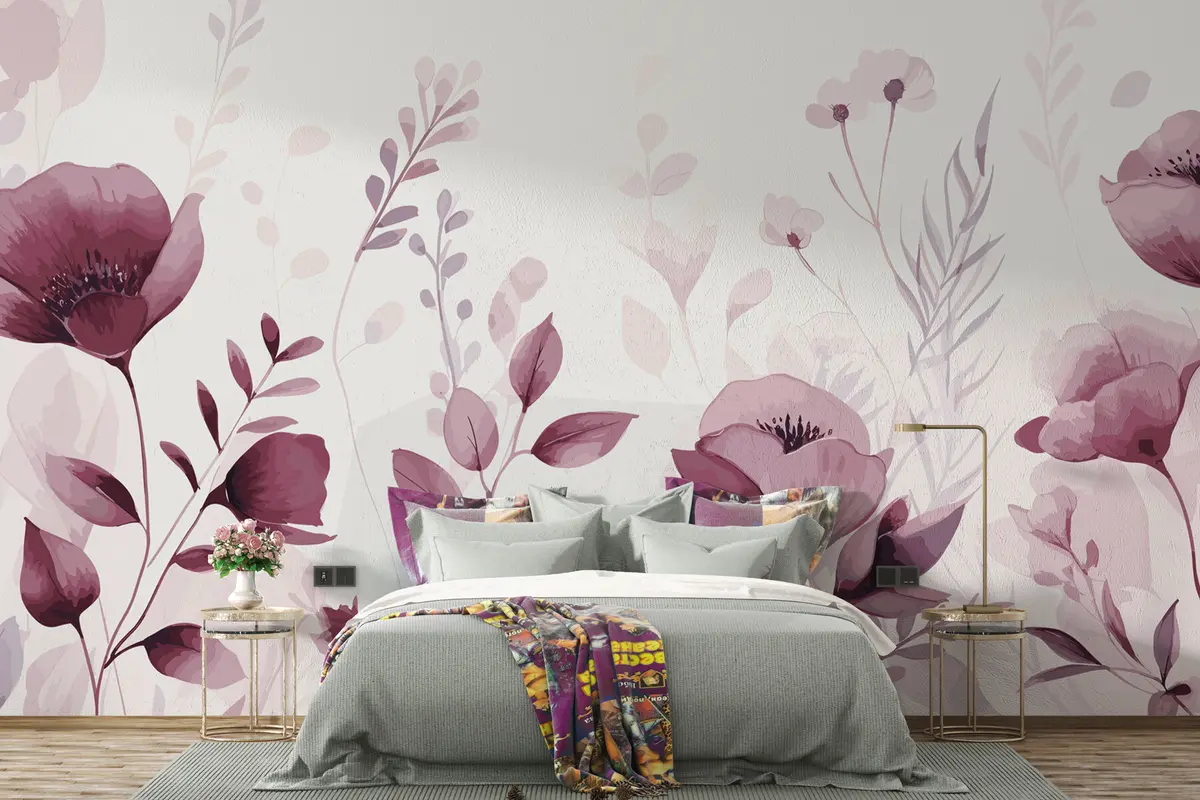 Τοιχογραφίες Ροζ λουλούδια σε λευκό φόντο Nr. u99558