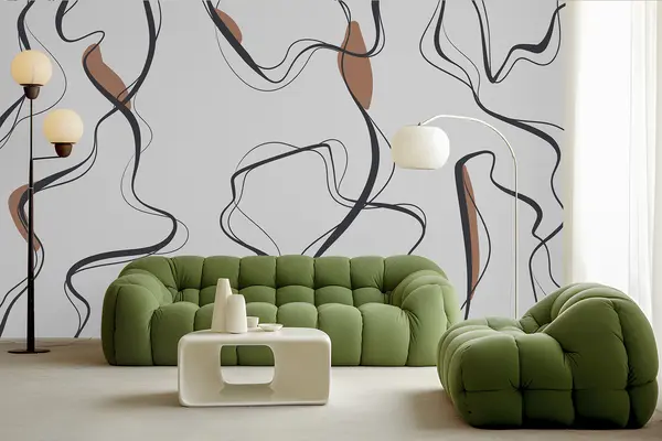 Τοιχογραφίες Μελάνι σχέδιο τέχνης, αφηρημένο μοτίβο, γεωμετρικές γραμμές, γκρι και πορτοκαλί Nr. u99659v3