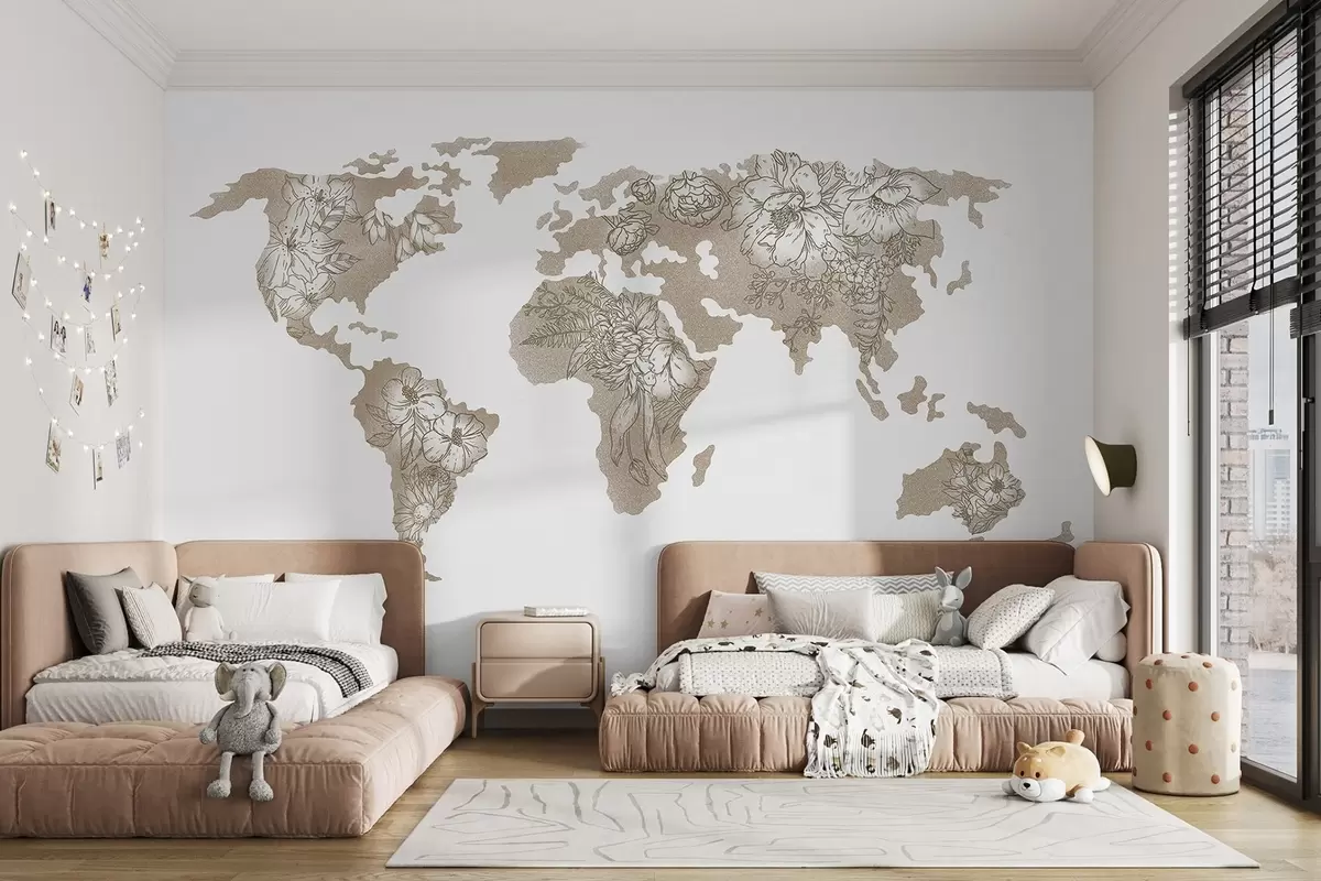 Τοιχογραφίες Φλοράλ χάρτης του κόσμου Nr. u99734