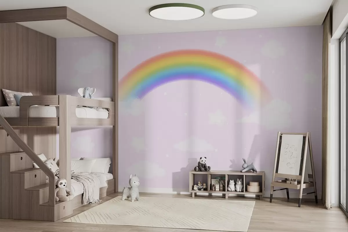 Τοιχογραφίες Ευφάνταστο ουράνιο τόξο ανάμεσα σε χνουδωτά σύννεφα Nr. w00013