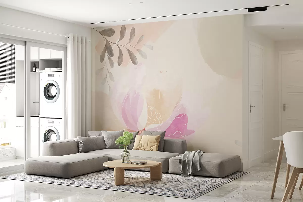 Τοιχογραφίες μεγάλο λουλούδι, παστέλ, ακουαρέλα, μπεζ χρώμα Nr. w00396