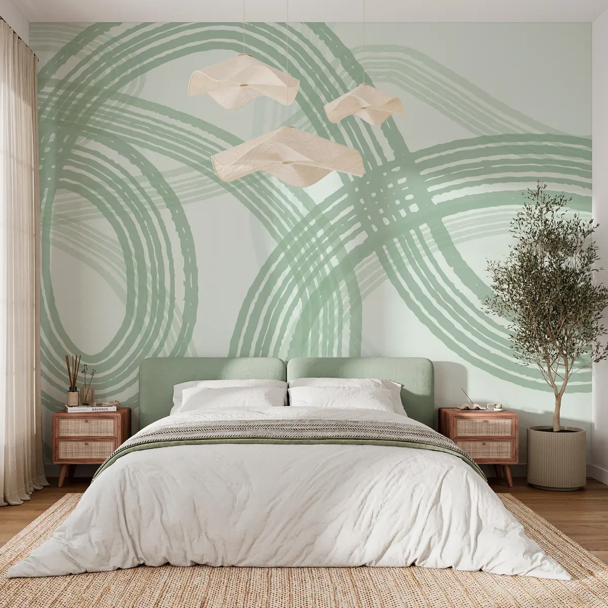 Τοιχογραφίες Αφηρημένες γραμμές σε στυλ boho πράσινο χρώμα Nr. w00417v2