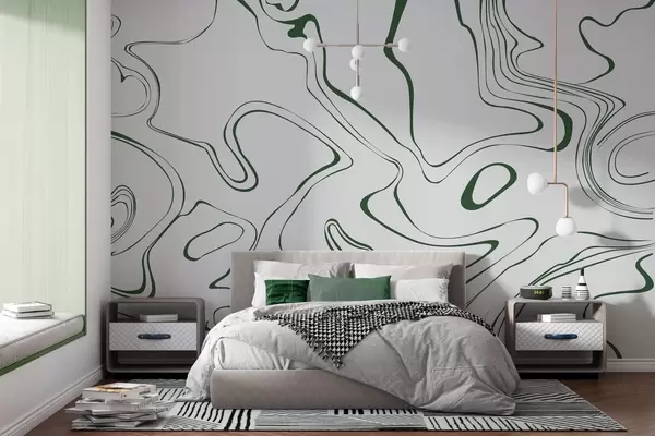 Τοιχογραφίες Ρευστές γραμμές σε πράσινο και λευκό Nr. w00634v3