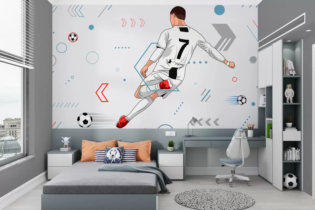 Τοιχογραφίες Ταπετσαρία με ποδοσφαιριστές και ποδοσφαιρικά χαρακτηριστικά Nr. w00688