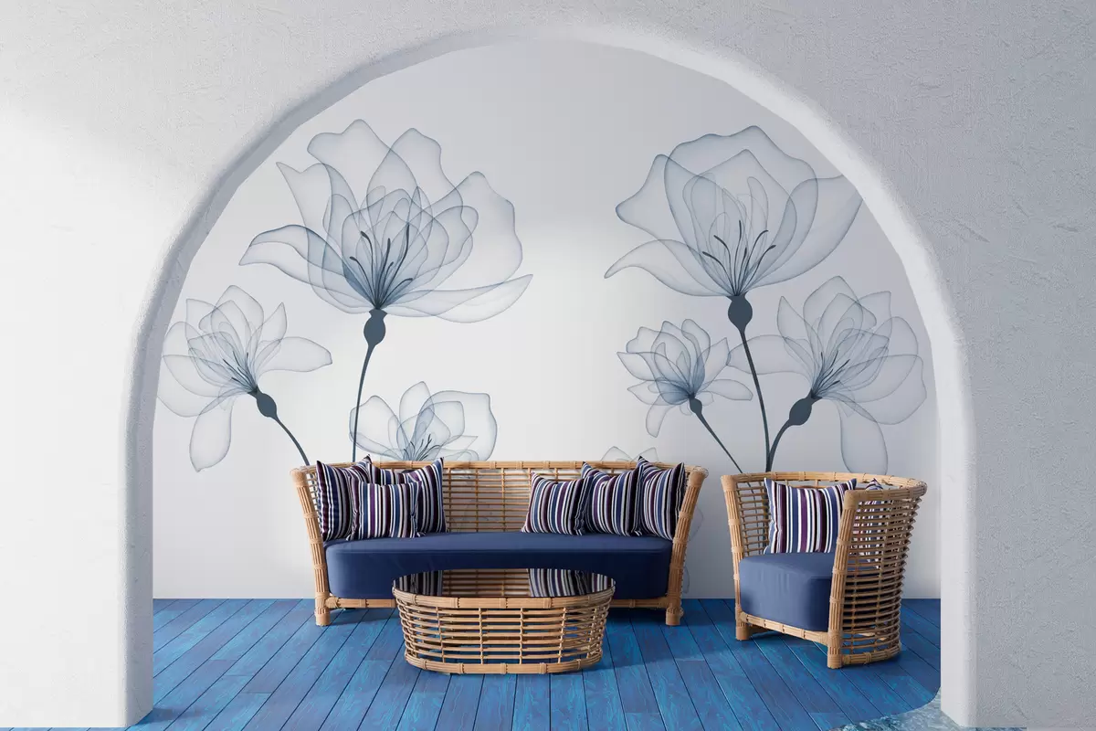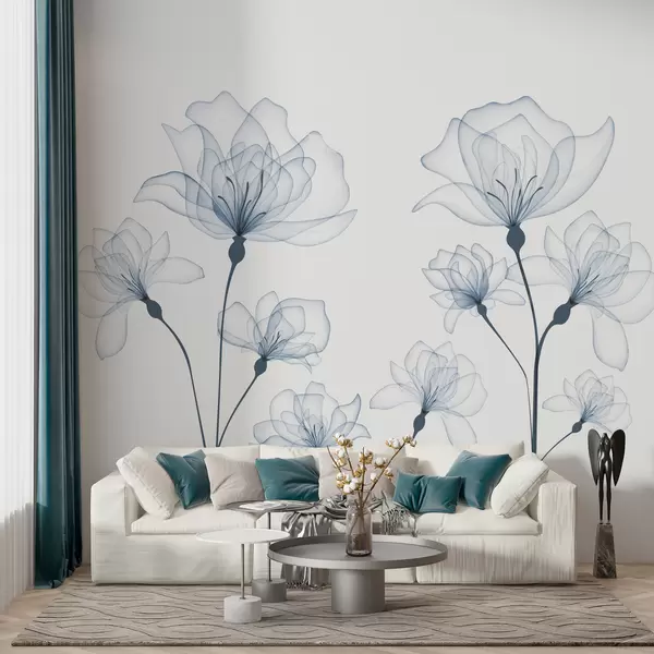 Τοιχογραφίες Λεπτά μπλε λουλούδια ακουαρέλας Nr. w00744v1