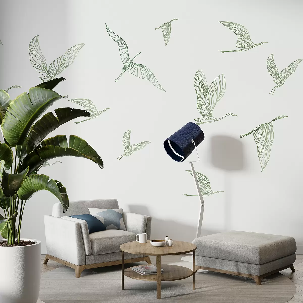 Τοιχογραφίες Flying birds line art, μινιμαλισμός, φύση, πράσινα χρώματα Nr. w00758v2