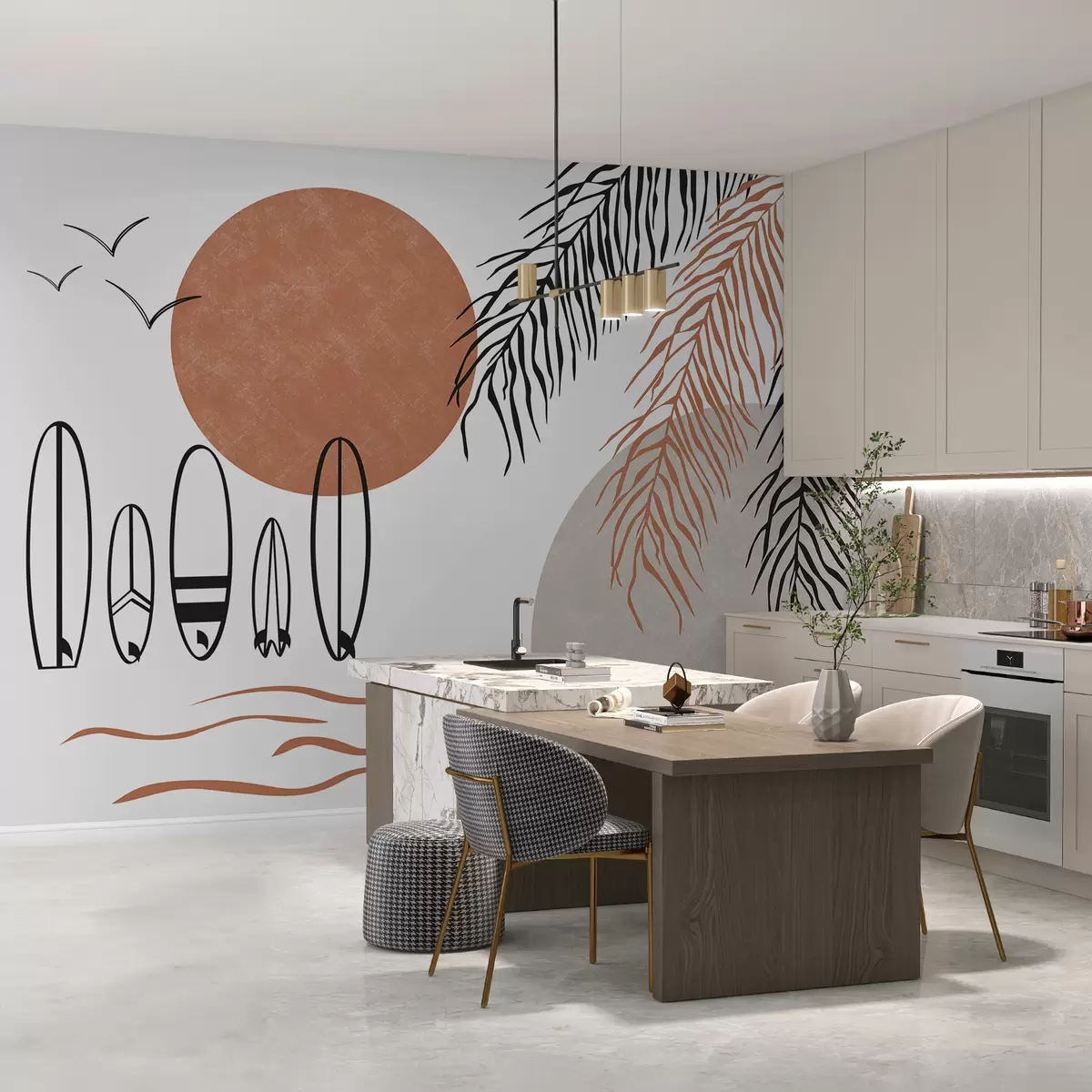 Τοιχογραφίες Σανίδες του σερφ, γραμμικό σχέδιο από κλαδιά φοίνικα, μαύρο και κόκκινο χρώμα Nr. w00958
