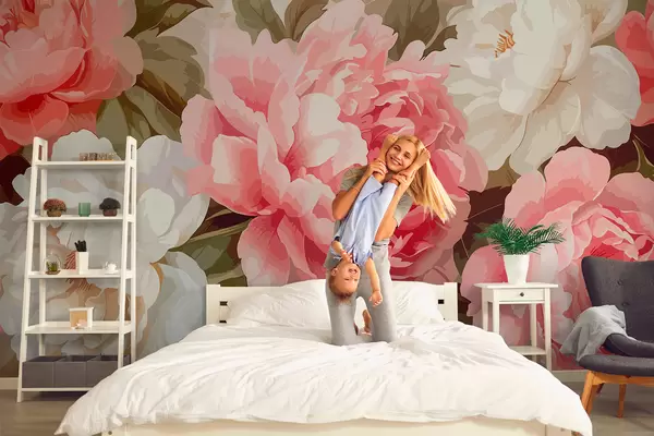 Τοιχογραφίες Ροζ και λευκές παιώνιες Nr. w01064