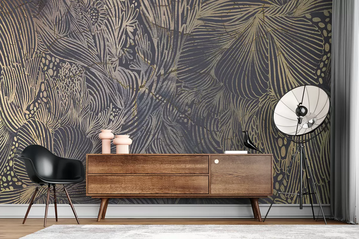 Τοιχογραφίες Αφηρημένη πολυτελής εκτύπωση με αλληλοεπικαλυπτόμενα οργανικά σχήματα και γραμμές Nr. w01243
