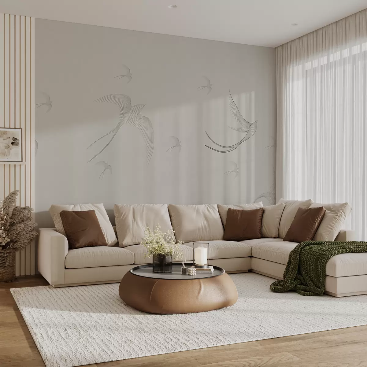 Τοιχογραφίες Γραμμικά χελιδόνια σε μπεζ φόντο Nr. w01264v1