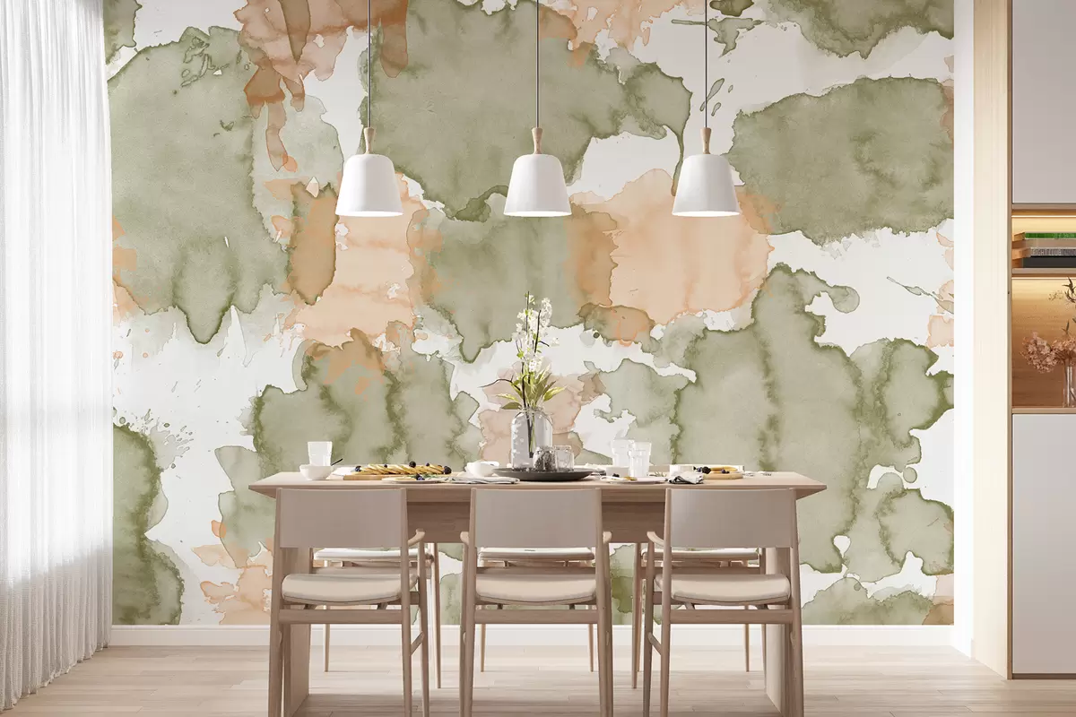 Τοιχογραφίες Αφαίρεση ακουαρέλας, σχέδιο μοτίβων, φυσικά πράσινα και μπεζ χρώματα Nr. w01284v1