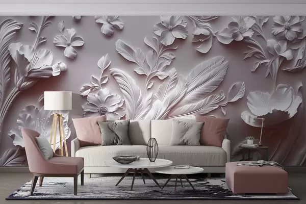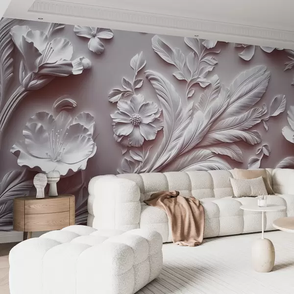 Τοιχογραφίες Εξαιρετικά ανασηκωμένα άνθη και φύλλα σε ροζ τόνους Nr. w01356v1