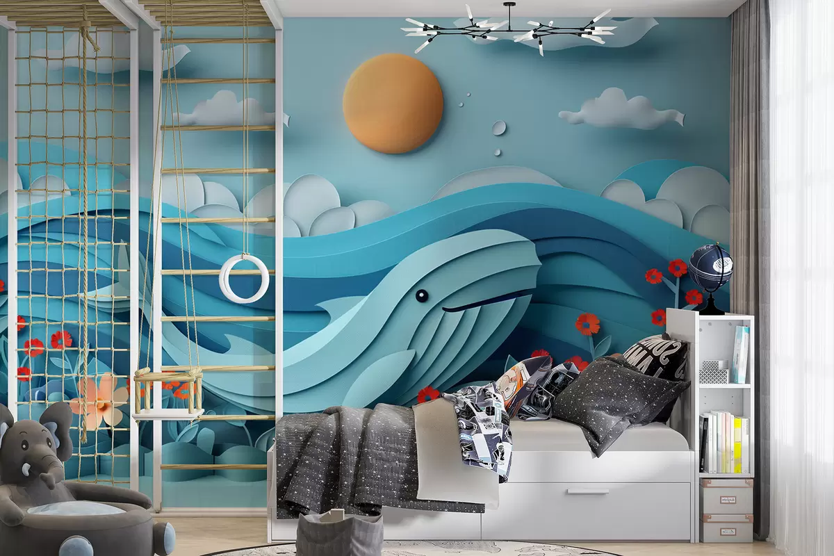 Τοιχογραφίες Χαριτωμένη φάλαινα σε μπλε φόντο Nr. w01430