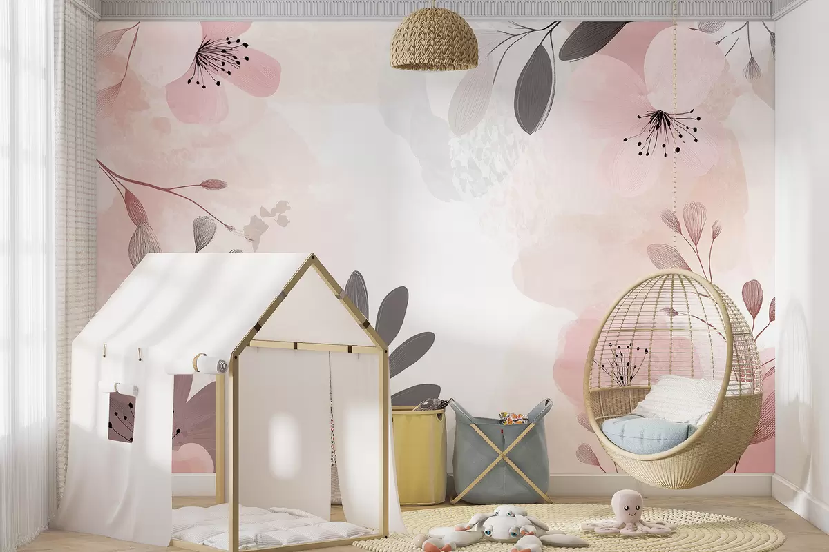Τοιχογραφίες Αφηρημένο floral σχέδιο, φύση, μεγάλα λουλούδια, απαλό παστέλ, ροζ χρωματική παλέτα Nr. w01451v1