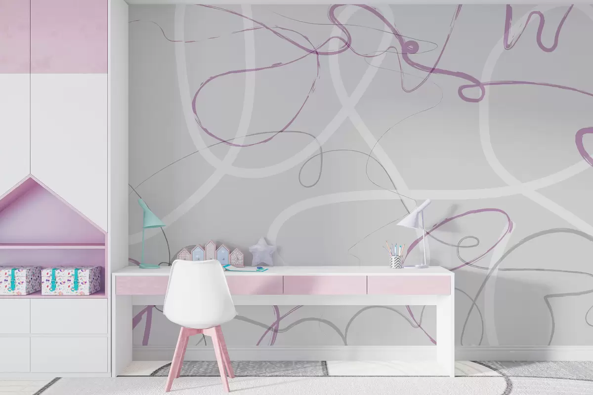 Τοιχογραφίες Αφηρημένες μοβ γραμμές σε γκρι φόντο Nr. w01455v2