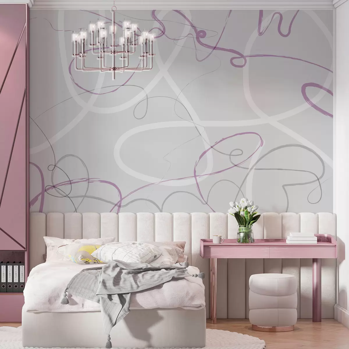 Τοιχογραφίες Αφηρημένες μοβ γραμμές σε γκρι φόντο Nr. w01455v2