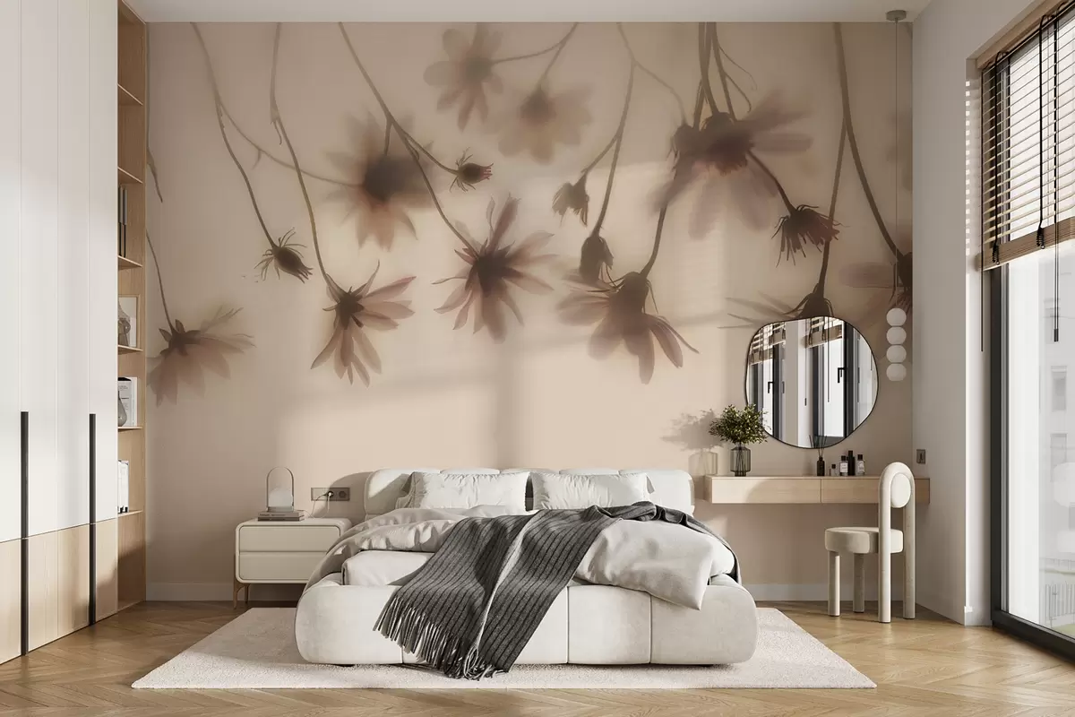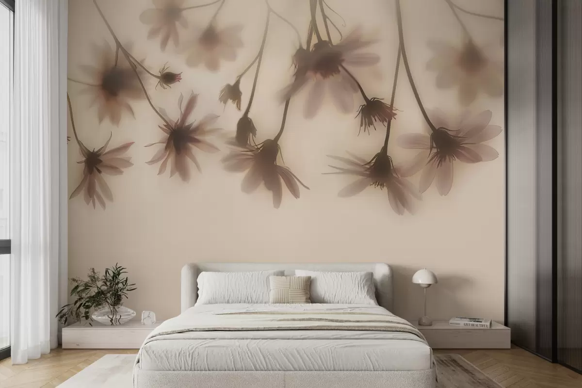 Τοιχογραφίες Λεπτά λουλούδια στην ομίχλη κρέμονται από ψηλά σε ροζ χρώματα Nr. w01469