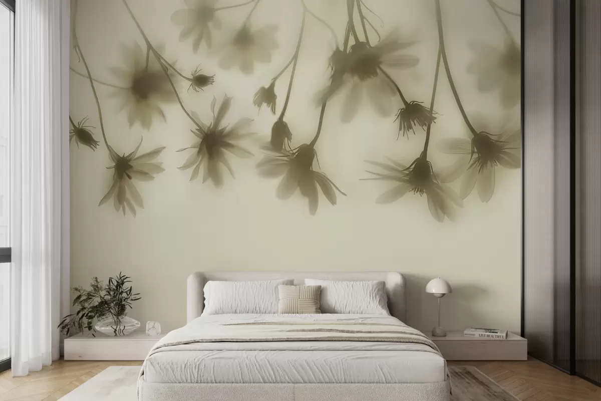 Τοιχογραφίες Λεπτά λουλούδια στην ομίχλη κρέμονται από ψηλά σε παστέλ χρώματα Nr. w01469v1