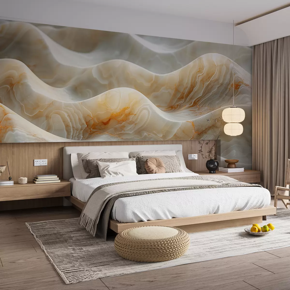 Τοιχογραφίες Κύματα μαρμάρου σε μπεζ χρώματα Nr. w01488