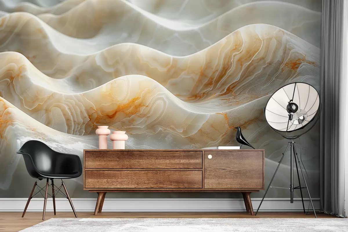 Τοιχογραφίες Κύματα μαρμάρου σε μπεζ χρώματα Nr. w01488