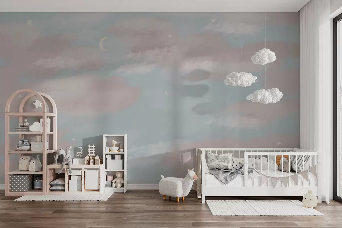 Τοιχογραφίες Μαγικός ουρανός με σύννεφα, φεγγάρι και αστέρια Nr. w01549