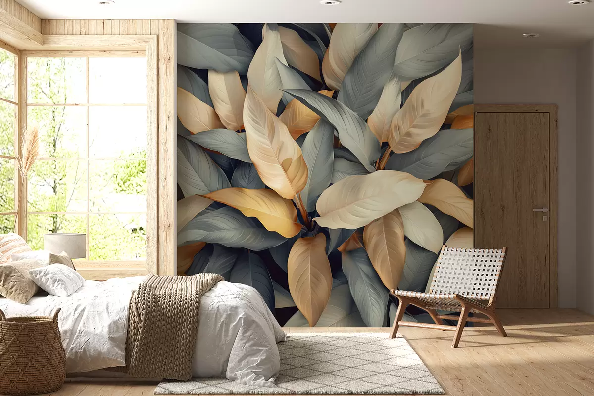 Τοιχογραφίες Τροπικά φυτά σε ροζ και μπεζ χρώματα Nr. w01586v1