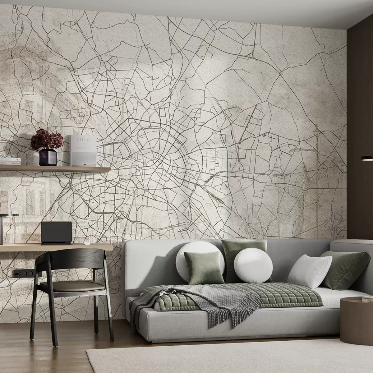 Τοιχογραφίες Χάρτης πόλης Βερολίνου, σχέδιο γραμμής, αρχιτεκτονική, Γερμανία, μπεζ χρώματα Nr. w01696