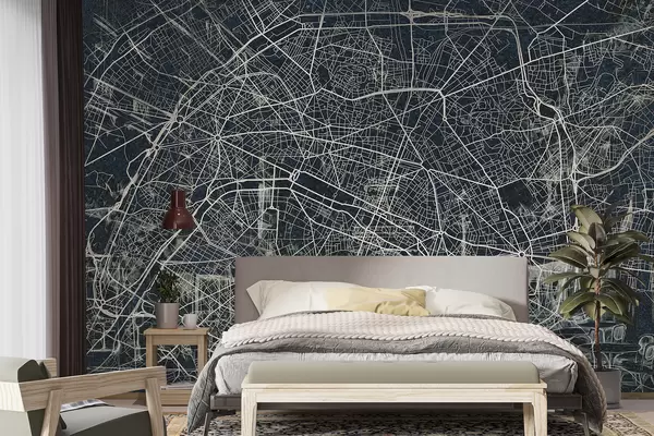 Τοιχογραφίες Χάρτης πόλης Παρίσι, γραμμικό σχέδιο, αρχιτεκτονική, Γαλλία, σκούρα χρώματα Nr. w01697v1