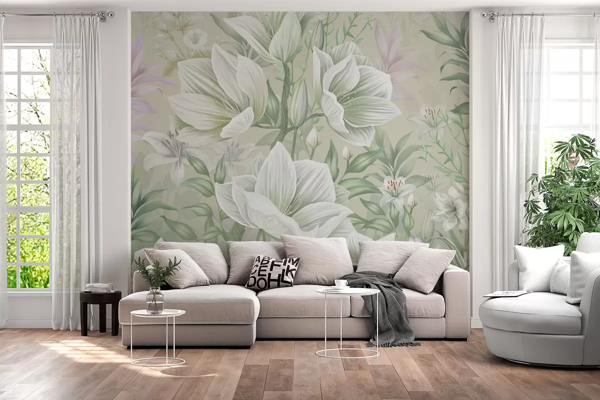 Τοιχογραφίες Όμορφα μεγάλα λουλούδια με κρίνα Nr. w01751