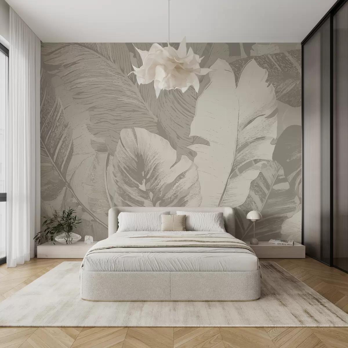 Τοιχογραφίες Μεγάλα φύλλα φοίνικα σε παστέλ χρώματα Nr. w01761