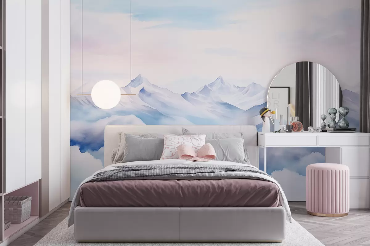 Τοιχογραφίες Ορεινά τοπία, ακουαρέλα, απαλά μωβ χρώματα Nr. w01787