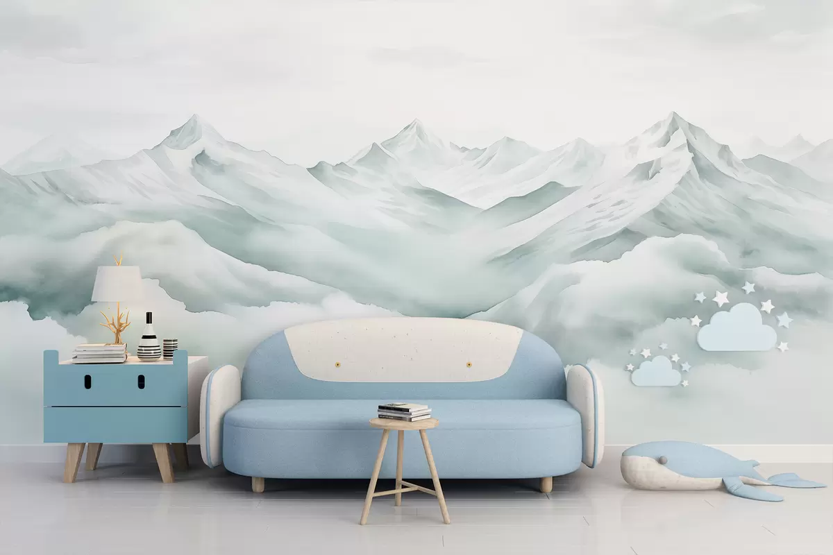 Τοιχογραφίες Ορεινό τοπίο, ακουαρέλα, απαλά μπλε χρώματα Nr. w01787v2