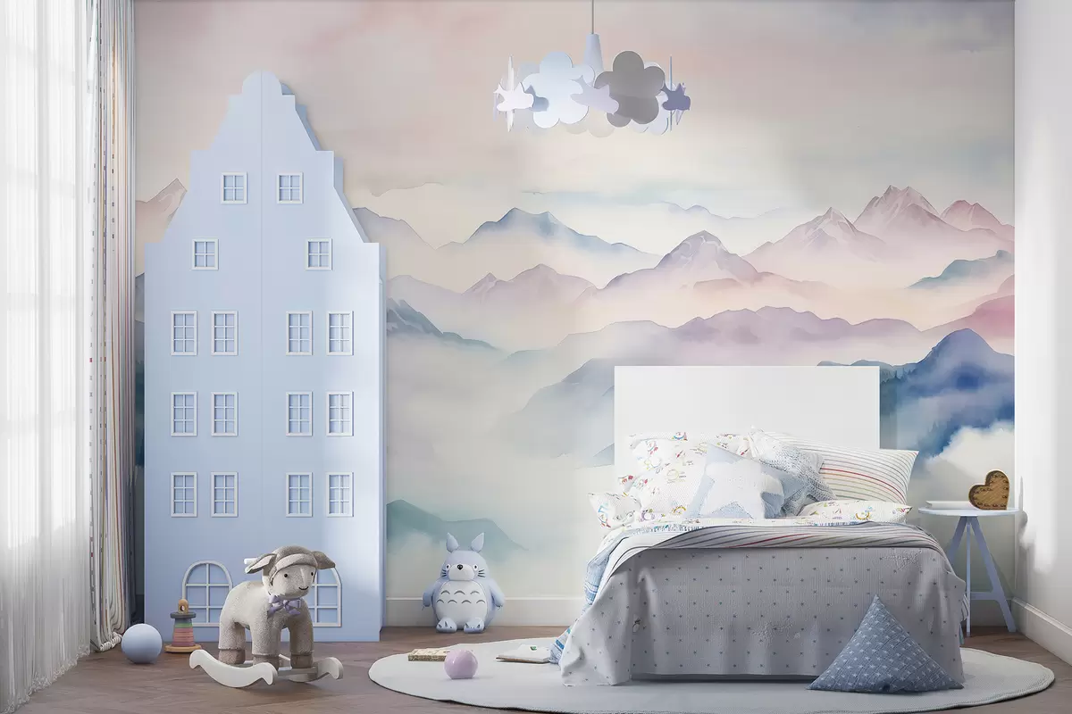 Τοιχογραφίες Αιθέρια βουνά τοπίο, σύννεφα, ακουαρέλα Nr. w01791
