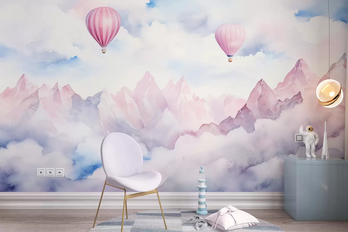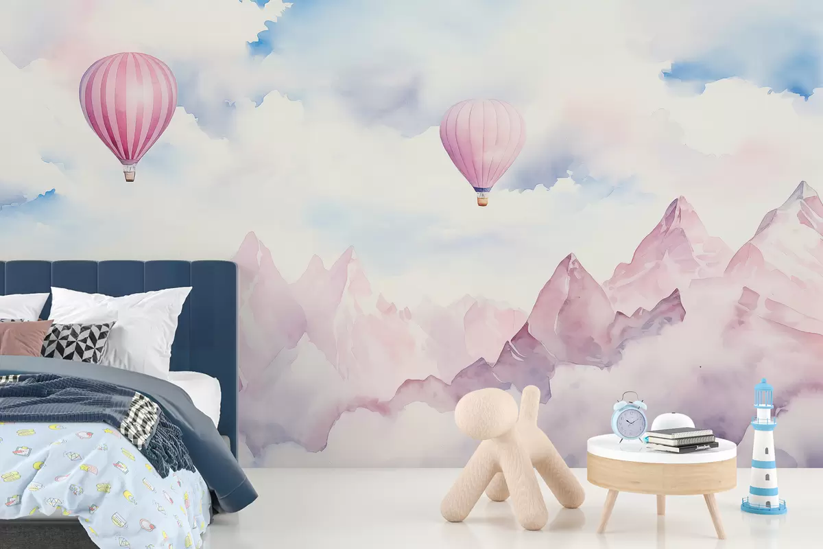 Τοιχογραφίες Όμορφα βουνά τοπίο με μπαλόνια αέρα, ακουαρέλα Nr. w01792
