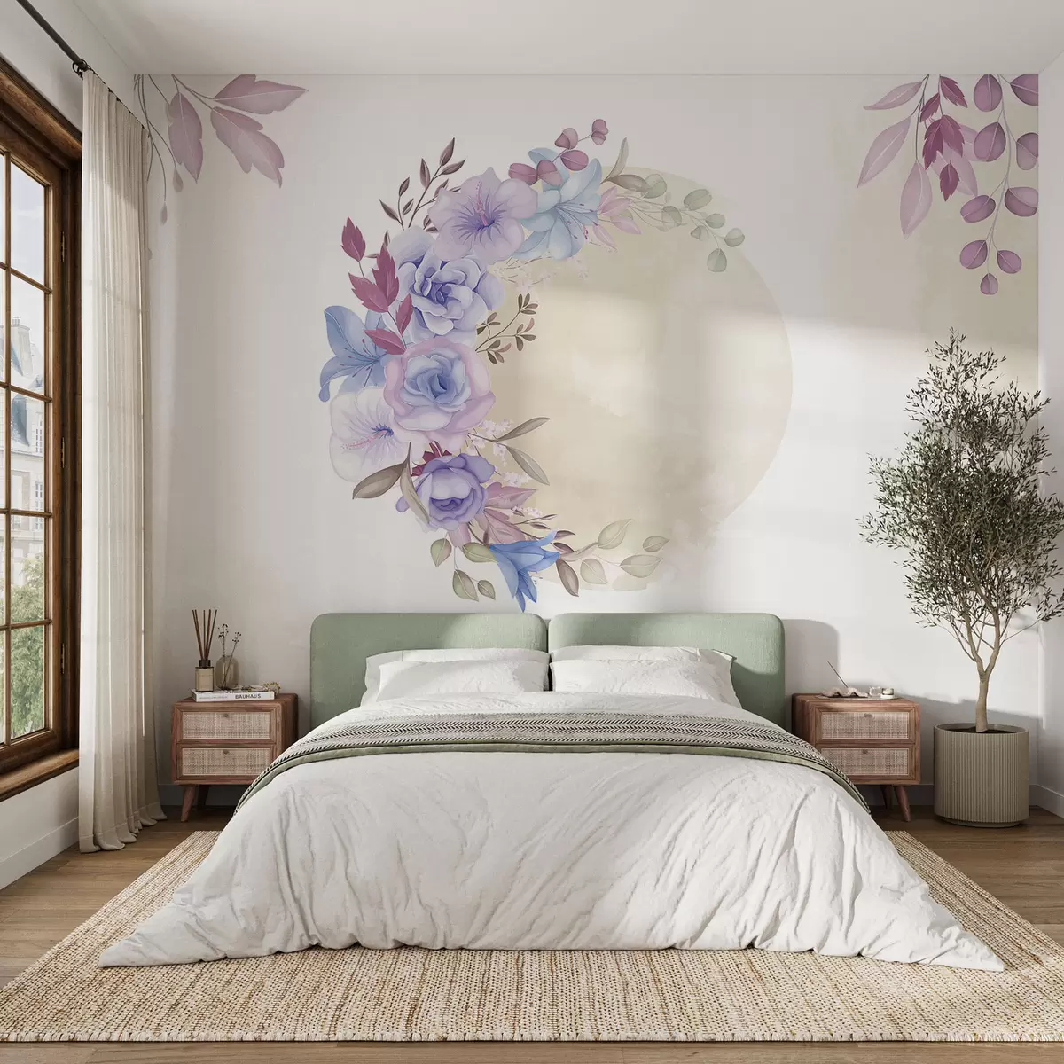 Τοιχογραφίες Λεπτά λουλούδια σε σχήμα μισοφέγγαρου σε στυλ ακουαρέλας με μπεζ κηλίδες Nr. w01874