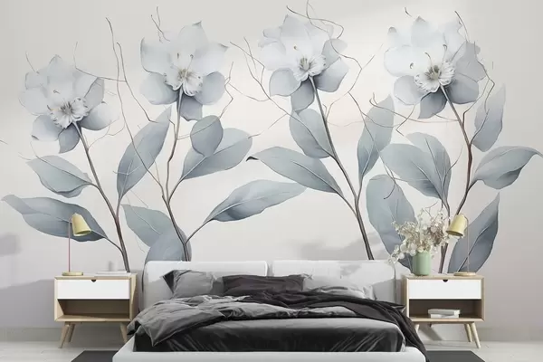 Τοιχογραφίες Ακρυλικά λουλούδια, μινιμαλισμός, γκρι παλέτα χρωμάτων Nr. w01883