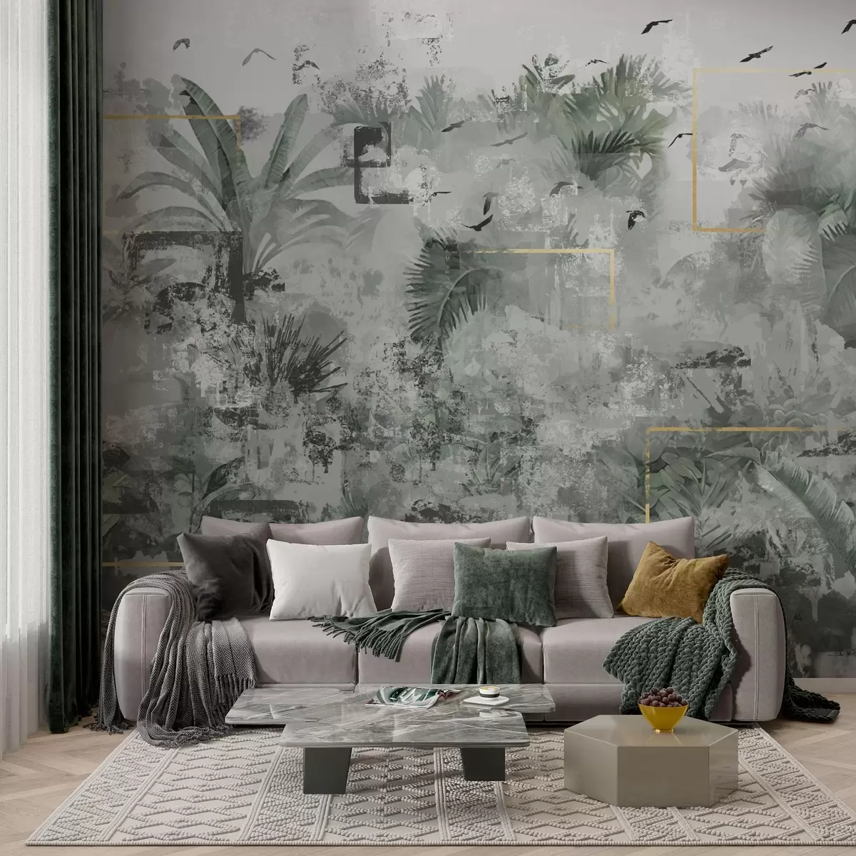 Τοιχογραφίες Σιλουέτα τροπικού δάσους σε στυλ grunge Nr. w01917