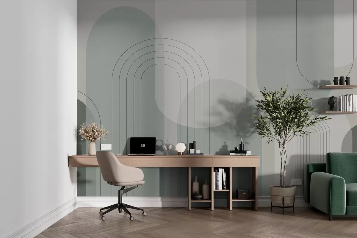 Τοιχογραφίες Μινιμαλιστική και boho γεωμετρία σε πράσινους τόνους Nr. w01920