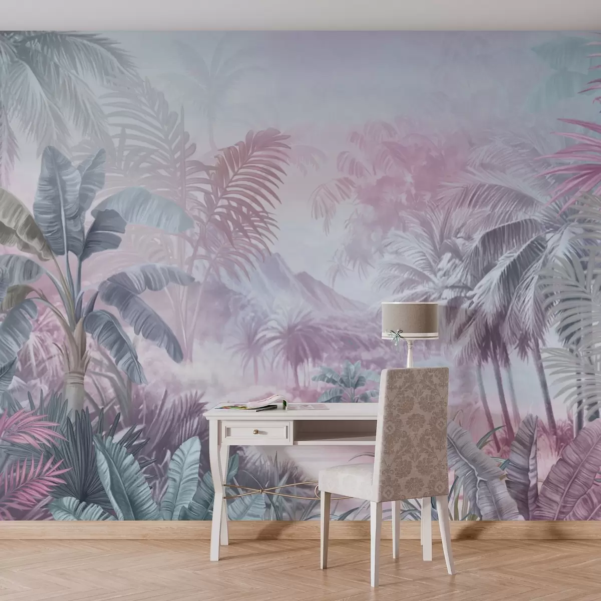 Τοιχογραφίες Τροπικό δάσος σε απαλές μπλε και ροζ αποχρώσεις Nr. w01931v2