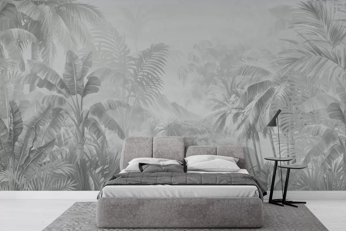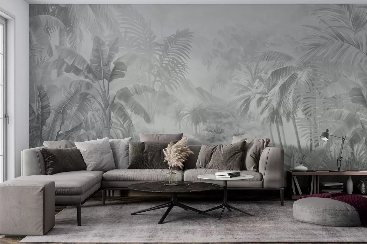 Τοιχογραφίες Τροπικό δάσος σε απαλούς γκρίζους τόνους Nr. w01931v4