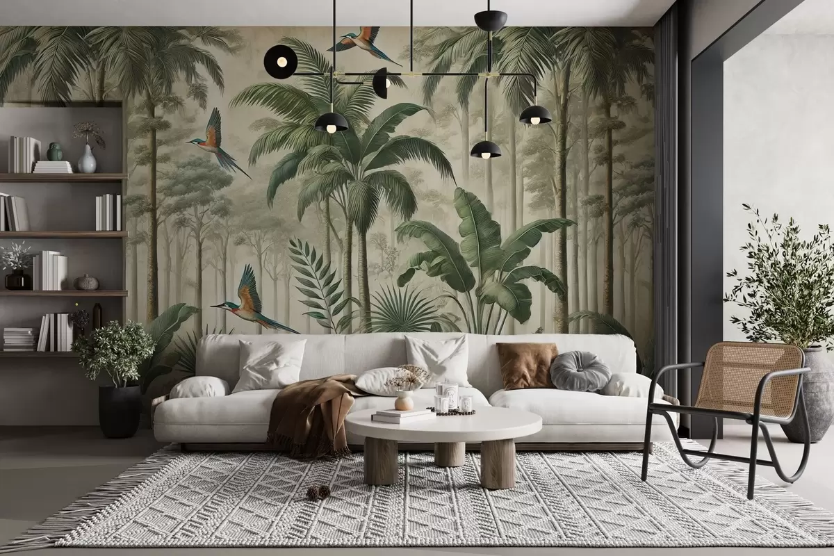 Τοιχογραφίες Πανόραμα με τροπικό τοπίο και πουλιά Nr. w01957