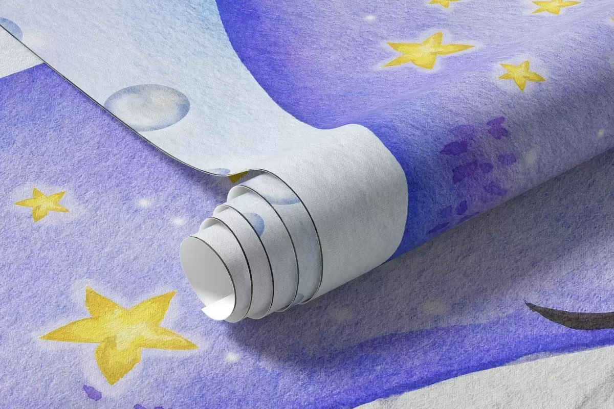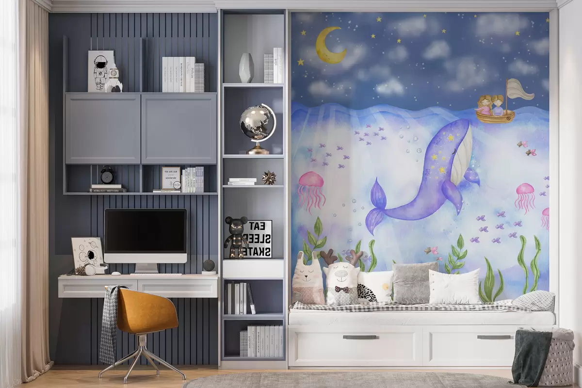 Τοιχογραφίες Φάλαινα κολυμπά κάτω από ένα έναστρο νυχτερινό ουρανό Nr. w01965