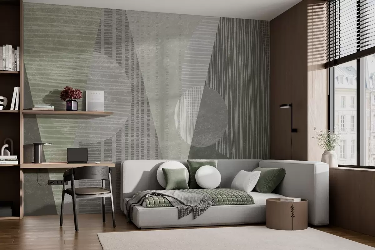 Τοιχογραφίες Σύγχρονη γεωμετρία σε vintage στυλ σε πράσινα χρώματα Nr. w02003v2