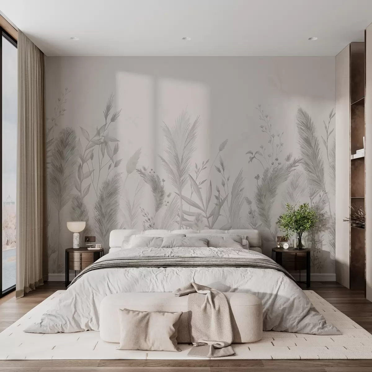 Τοιχογραφίες Ψηλά χόρτα και λουλούδια σε ουδέτερα χρώματα Nr. w02004