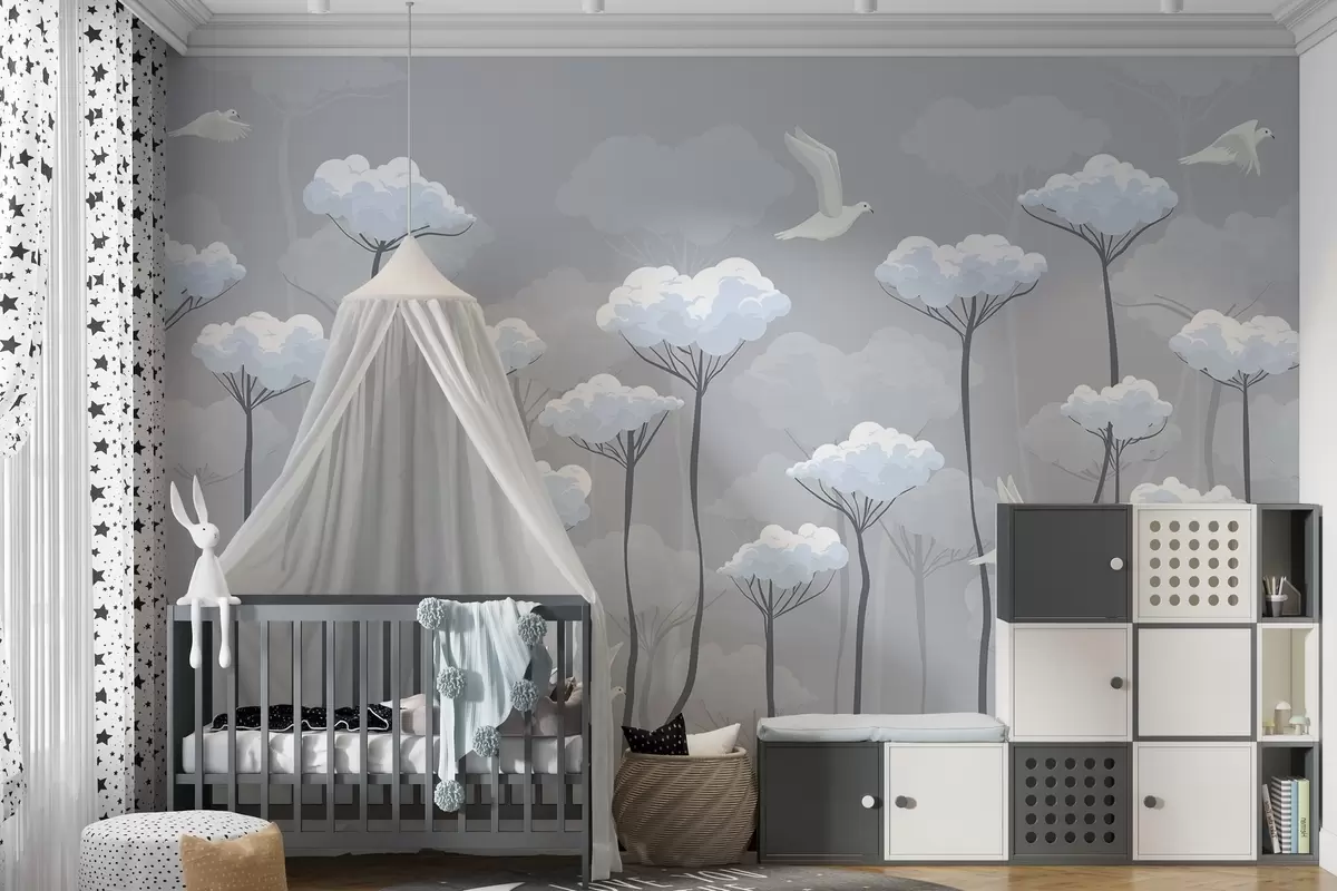 Τοιχογραφίες Παραμυθένια δέντρα με τη μορφή σύννεφων Nr. w02009