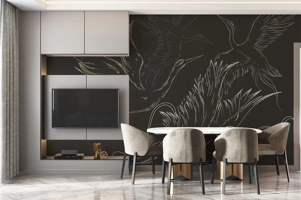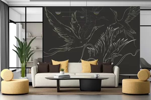 Τοιχογραφίες Πουλιά που πετούν, μινιμαλισμός, γραμμή τέχνης, φύση, σκοτεινό φόντο Nr. w02061v3